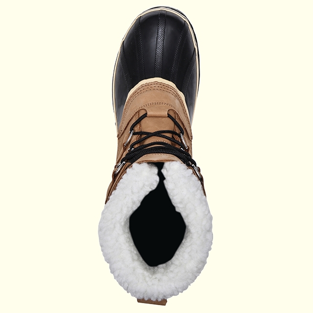 約-40度まで対応する極寒地にも適したRIDGE TOPは、フェルトのカフにより履き口からの雪の侵入を防ぎ、ラディアンテックスは内部をあたたかくドライに保ってくれる。