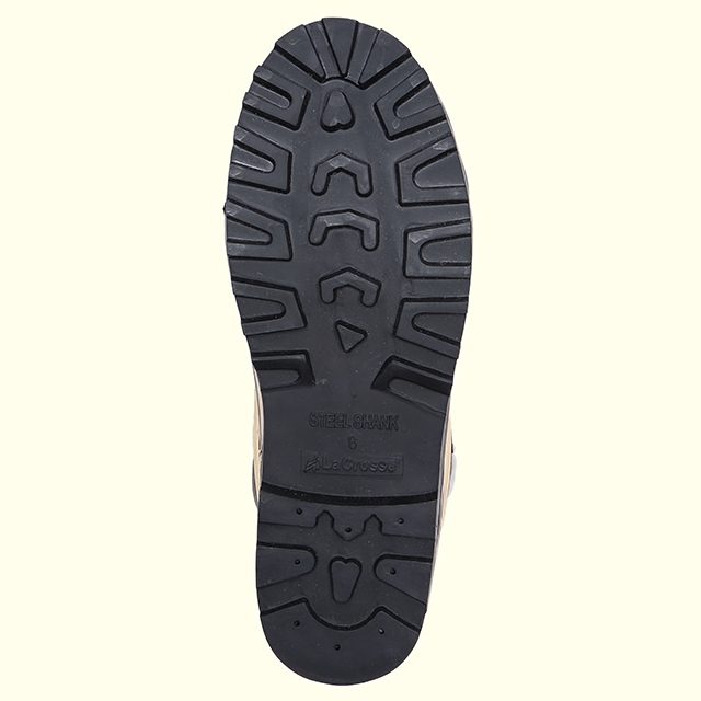 アーチ状のスチールシャンクを内蔵し足の保護と安定性を確保している。