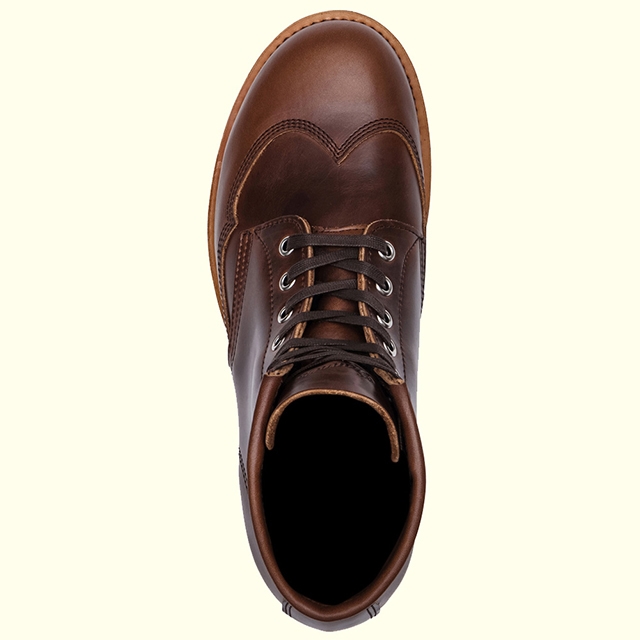 アッパーにはホーウィン社のレザーを使用し、独特のツヤ感と光沢。ライニングにはナチュラルレザーが施され、吸汗性に優れる。