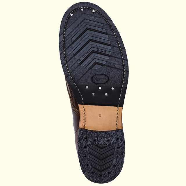 堅牢なグッドイヤーウェルト製法を採用し、底周りはセパレートタイプのビブラム・タイガムソールとレザーベンズから成る。