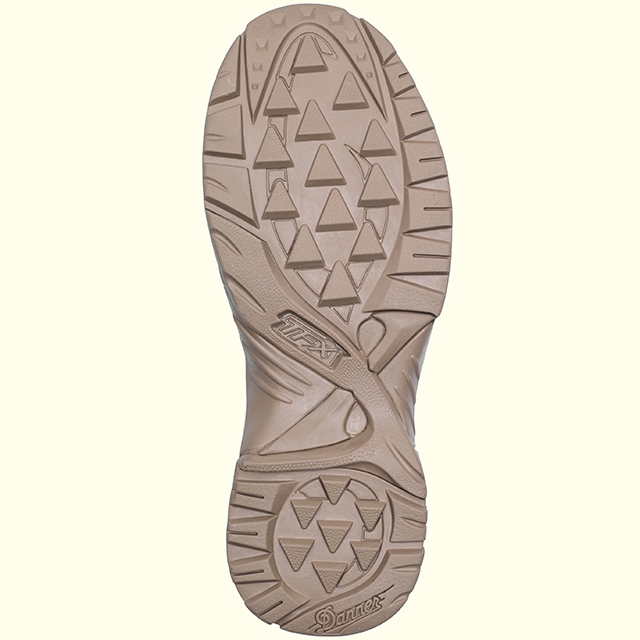 ダナーのベストセラーである、Desert TFXに軽量素材のビブラムソールを組み合わせたブーツ。安定性とスピード感を重視した作りで、耐久性と防水性に強い1000デニールナイロンとラフアウトレザーを使用。ステッチをクロスに施す等して、強さにもすぐれています。ビブラムストライカートレントアウトソールを採用しています。