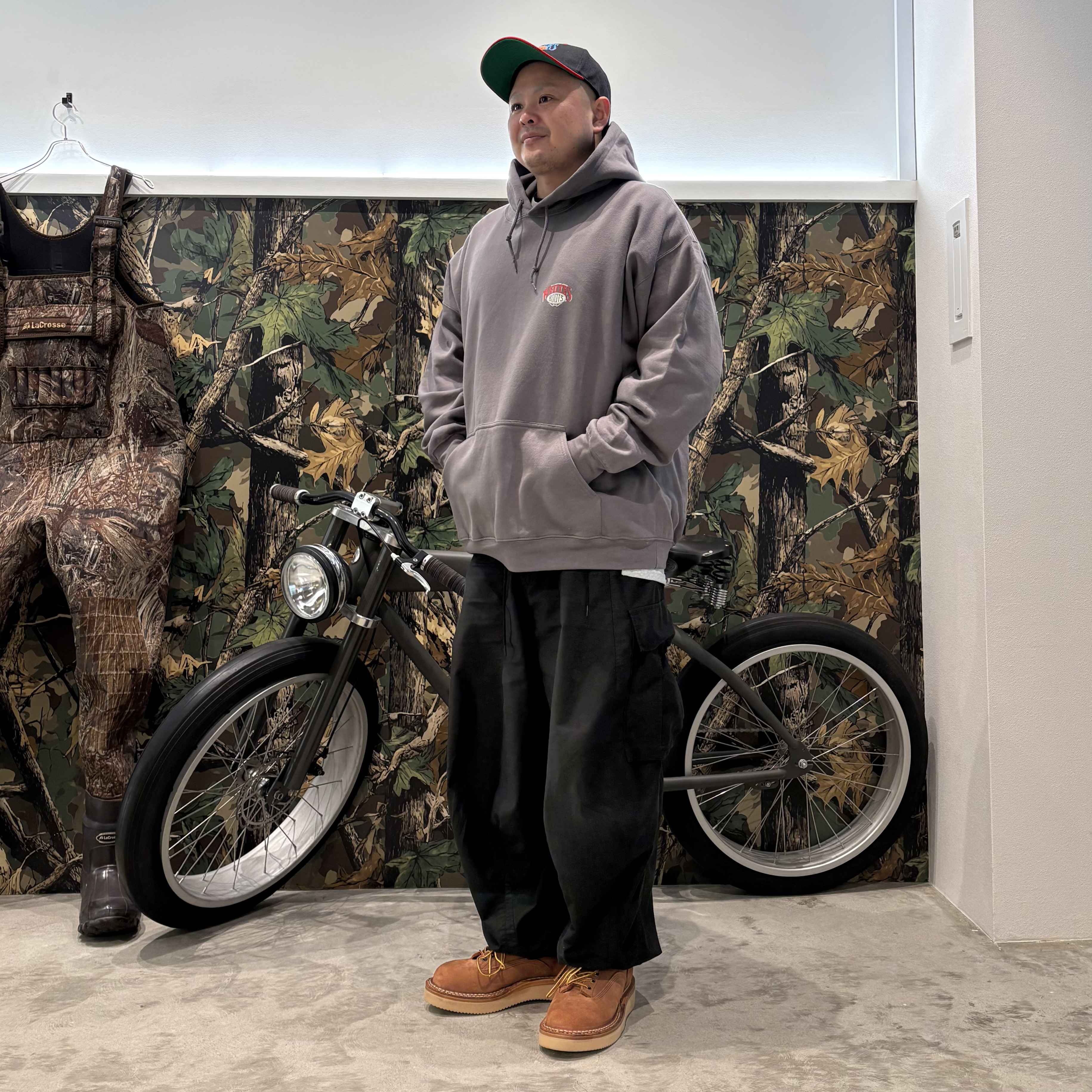 アッパーは『SMOKE JUMPER』に似たデザインながら、ソールは一般的にトラクションソールを組み合わせる事が多く ボリュームあるルックスが足元にインパクトを与えてくれる。