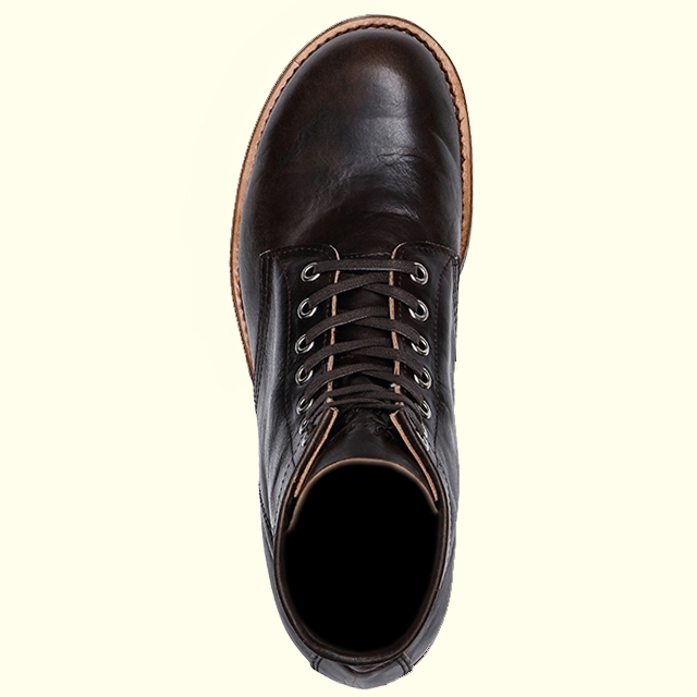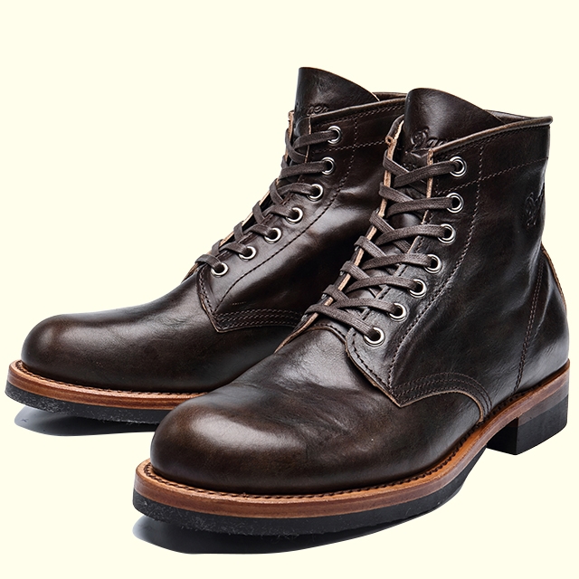 クラシックなサービスシューズを彷彿とさせる6インチのセミドレスブーツ。 ベジタブルタンニンなめしを採用したアッパーレザーはナチュラルな仕上がりで足あたりも良好。 WIDTH : Men's EE - Wide