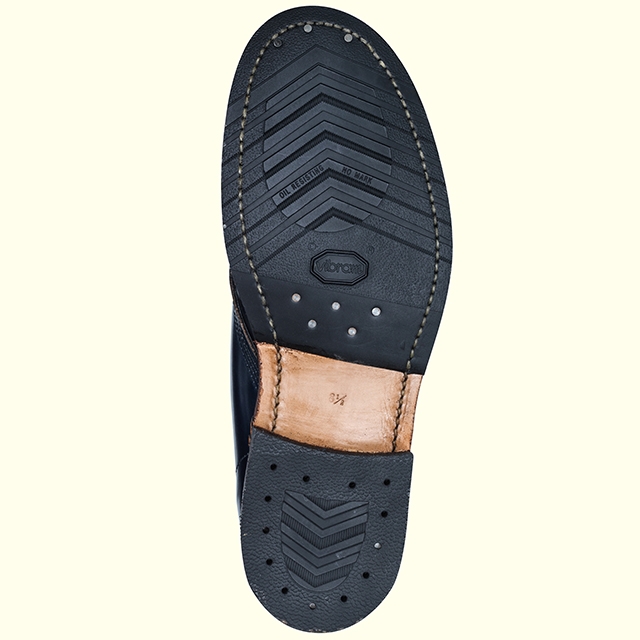 ライニングにはナチュラルレザーが施され、吸汗性に優れる。底周りはセパレートタイプのビブラム・タイガムソールとレザーボードから成る。