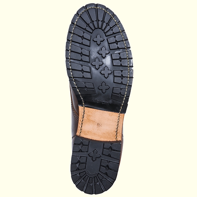 ライニングにはナチュラルレザーが施され、吸汗性に優れる。底周りはセパレートタイプのビブラム・タイガムソールとダブルレザーボードから成る。