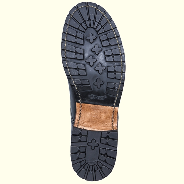 ライニングにはナチュラルレザーが施され、吸汗性に優れる。底周りはセパレートタイプのビブラム・タイガムソールとダブルレザーボードから成る。
