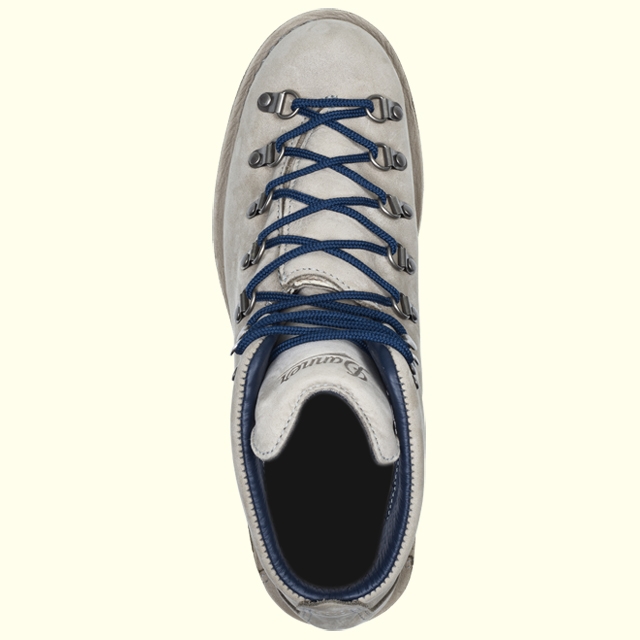 昔ながらのマウンテンブーツのデザインは、アッパーのほとんどを1枚革で構成し、