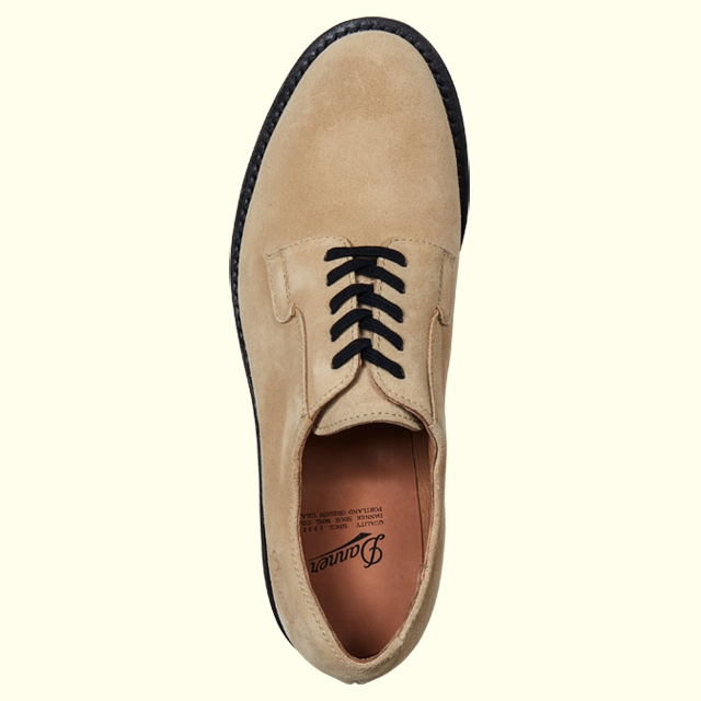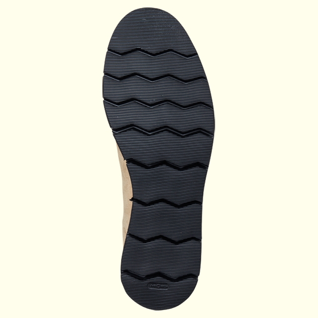 肉厚なカウスエードをほぼワンピースに近い状態でアッパーに使用、高品質な革の証でもある。