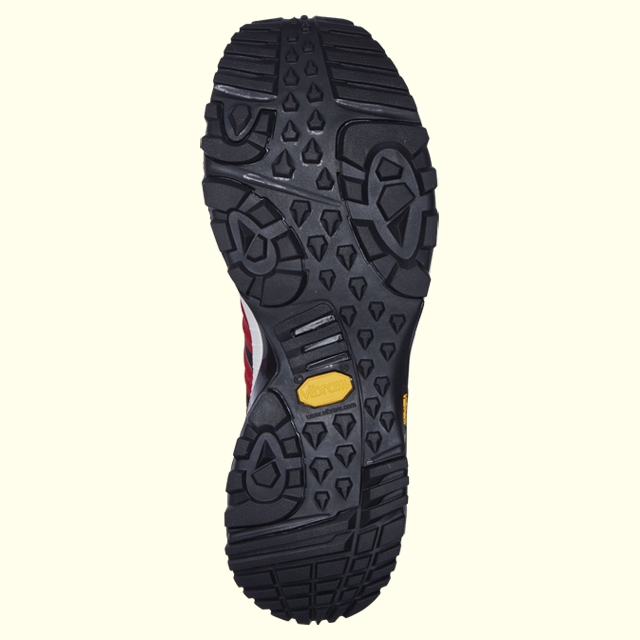 アウトソールはvibram FASTER のレイヤーソールを採用。高レベルのグリップ力とトラクションに加え、土踏まず部に配置されてTPU スタビライザーが ブレない着地をサポートする。"
