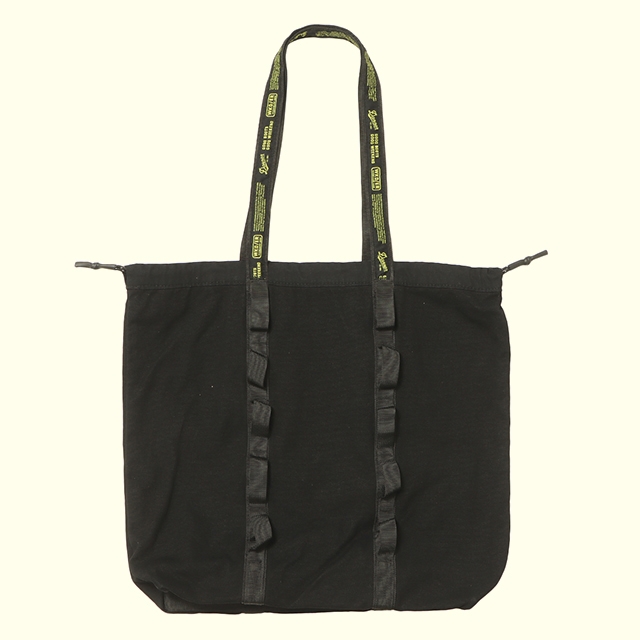 製品洗い加工を施したコットンキャンバス素材の人気定番型トートバッグ12ozのコットンキャンバスに異なる素材感のテープを合わせました。 製品洗いを施す事でコットン特有の適度なエイジング感を加えました。