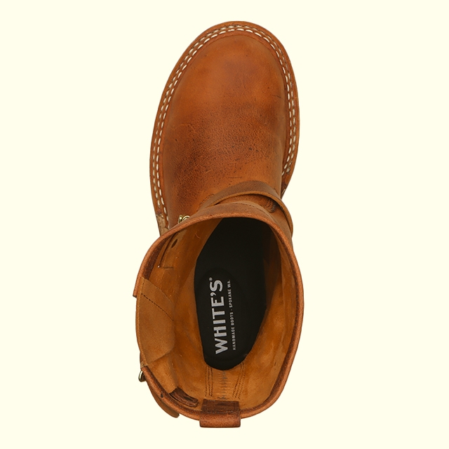 ワークブーツの王様と称される【WHITE’S BOOTS】 その歴史は140年以上に渡り、今現在も頑固なまでにハンドクラフト製法の伝統を守り作り続けている。 WHITE’S BOOTSの特徴は厳選されたレザーのみを使用する事、アッパーレザーとインソールを縫う【アイリッシュ・リネン】と呼ばれる太い糸を使用する事。 ハンドクラフトによるグッドイヤーウエルト製法は他社では実現できない柔軟性と快適性を生み出す。それら細部に渡るこだわりは、外からの水の浸透を完璧に防ぎ世界最高峰と呼ばれる強度を与える。ハンドクラフトはとても手間やコストが掛かり1日に限られた足数しか作れないため、【WHITE’S BOOTS】ほど手作業にこだわっているブーツブランドはアメリカでもほとんどない。 フラッグシップモデルの【SMOKE JUMPER】は、森林降下消防士用の靴として耐火性、強度に優れ、「森林火災の消火にあたる消防隊員が飛行機から降下し煙立つ火災現場に赴く」様からスモークジャンパーと呼ばれるようになる。 現在は、ワシントン州スポケーンに工場を構え、「一人一人の顧客ニーズに柔軟に対応できるシステムと品質を永く維持することが最も大事」という理念のもと、頑なに昔ながらの製法を守り高品質なブーツを作り続けている。