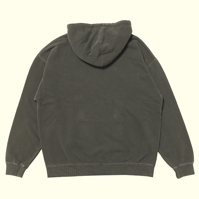 ピグメント染め+バイオウォッシュ加工によるヴィンテージ感のある仕上がり。