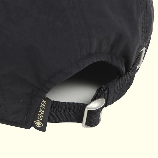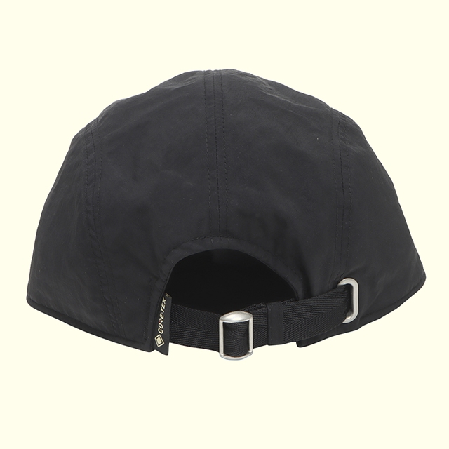 耐水性と耐摩耗性に優れた100%リサイクルナイロン製で、通気性のあるメッシュとGORE-TEX ePE防水メンブレンの裏地と、内側には吸湿発散性汗止めバンドが付いているので汗をかいたり、土砂降りの雨でも頭をドライに保ちます。