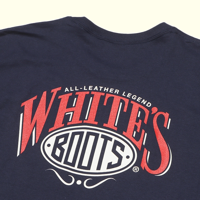 アメリカを代表するブーツメーカー、WHITES' BOOTSのブランドロゴを背面にプリントしたロングスリーブTシャツ。