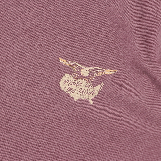 ボディにはピグメント加工(顔料染め)【※BLACKは直接反応染め】を施したUSED感のある表情のヘビーオンスを使用し、背面にはカスレ感のあるEAGLEのARTWORKをプリントしたSS TEE。