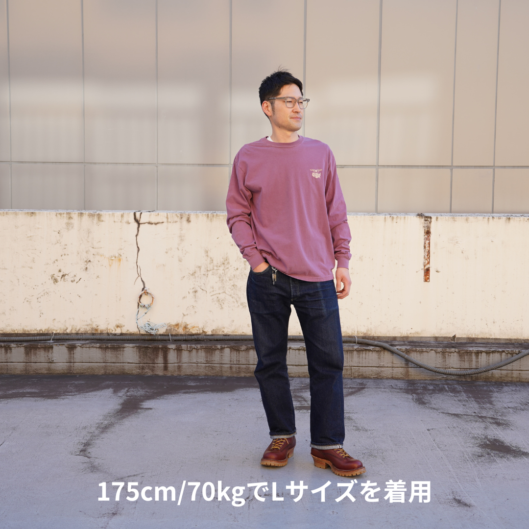 ボディにはピグメント加工(顔料染め)を施したUSED感のある表情のヘビーオンスコットンを使用。