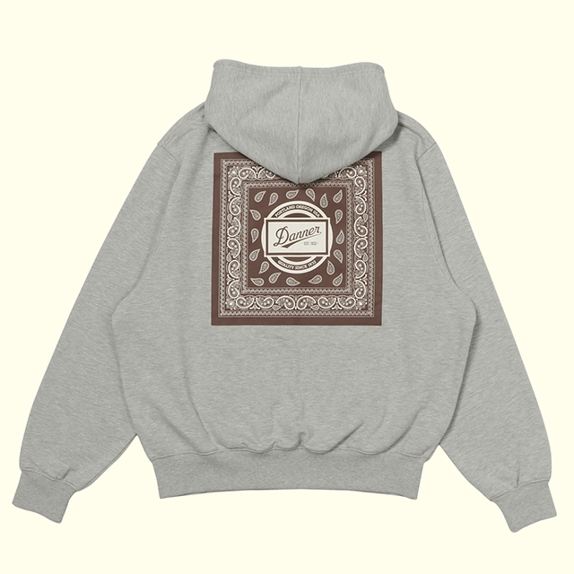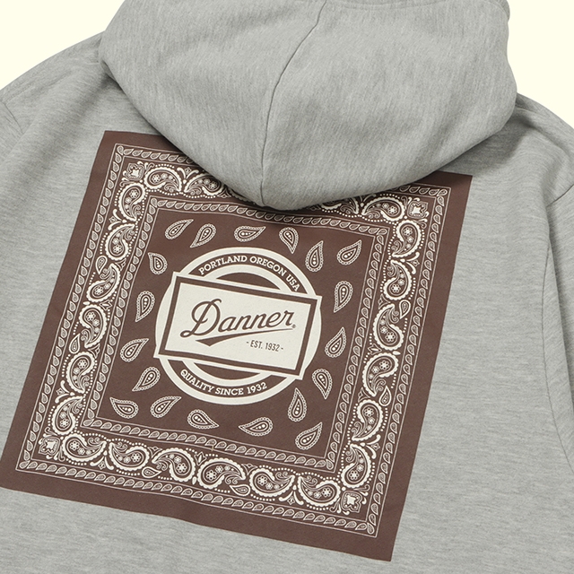 DANNERオリジナルのバンダナ柄プリントを施したジップパーカーの製品です。