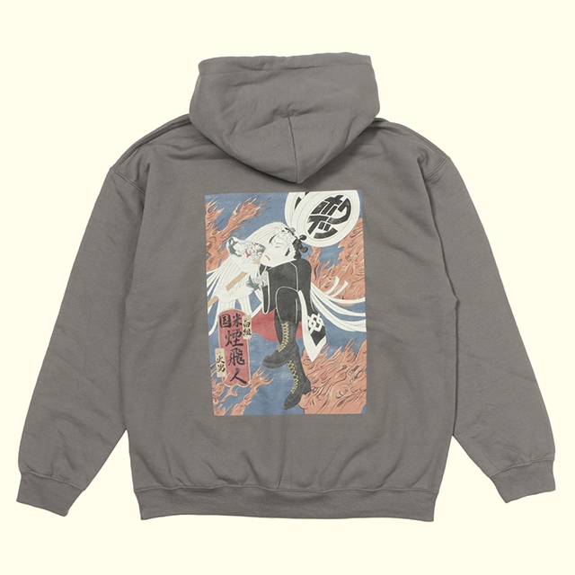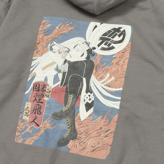 バックには、名作ブーツ「SMOKE JUMPER」を浮世絵風のイラストで表現したグラフィックがプリントされた、印象的なデザインです。