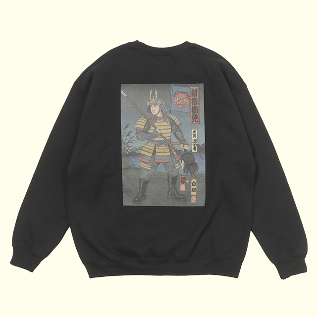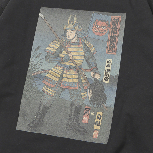 バックには日本のイラストレーションを彷彿とさせるグラフィックがプリントされた、インパクトのあるデザインです。