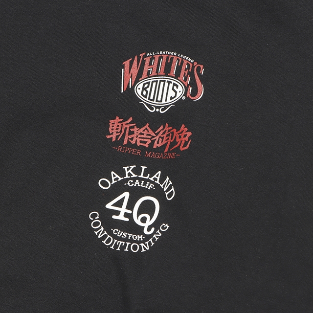 バイクカルチャー誌『RIPPER MAGAZINE』のスローガン「斬捨御免」と、WHITE'S BOOTS、そしてプロスケーター兼伝説的カスタムバイクビルダーのマックス・シャーフ(Max Schaaf)が主宰する4Q Conditioningによるトリプルコラボレーション。