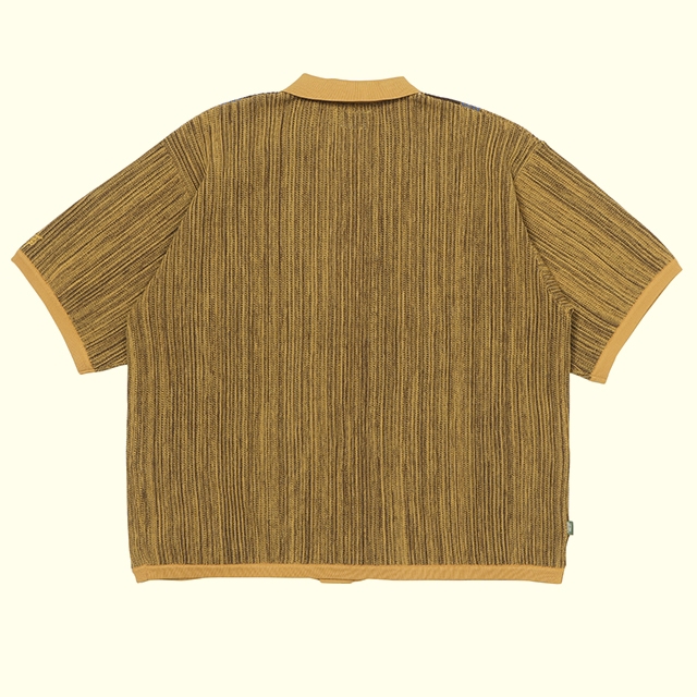 ポロシャツ型をベースに前開き仕様にしているため、きれいめな見た目の印象とリラックス感のバランスが取れたデザインです。