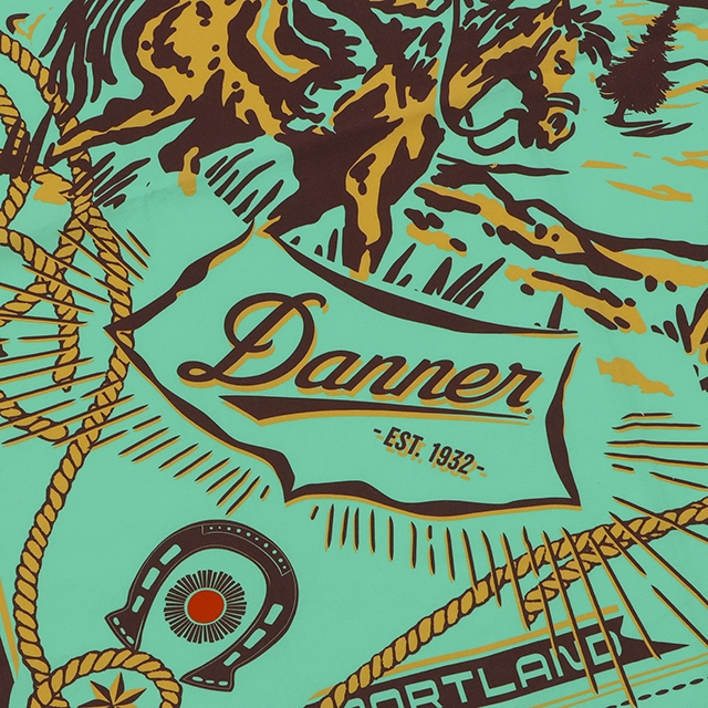 西部開拓時代をイメージさせる、DANNERオリジナルのグラフィックバンダナ。