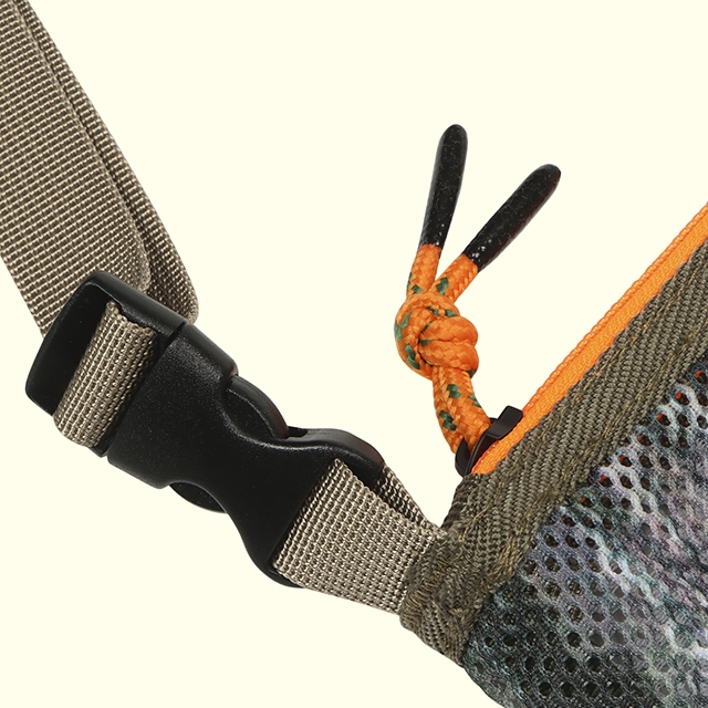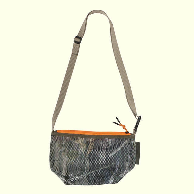 2026年新型のポーチは、厚手でしなやかな素材感のメッシュ生地に、ファスナー開閉でテープハンドルが付いた仕様。